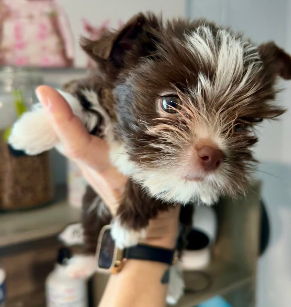 Tux is a 5 pound Parti Yorkshire Terrier with a fantastic personality, born February, 2025. He loves to snuggle, chat with you and give kisses. He loves everyone he meets! I am extremely sad that he won’t be part of my Artisan Yorkies program but he will make an excellent best friend. He will be available to go home after his neuter. Adoption cost $2500.00-includes neuter, vet check, up to date on vaccines.$1000.00 Holding Fee which will be deducted from final price.