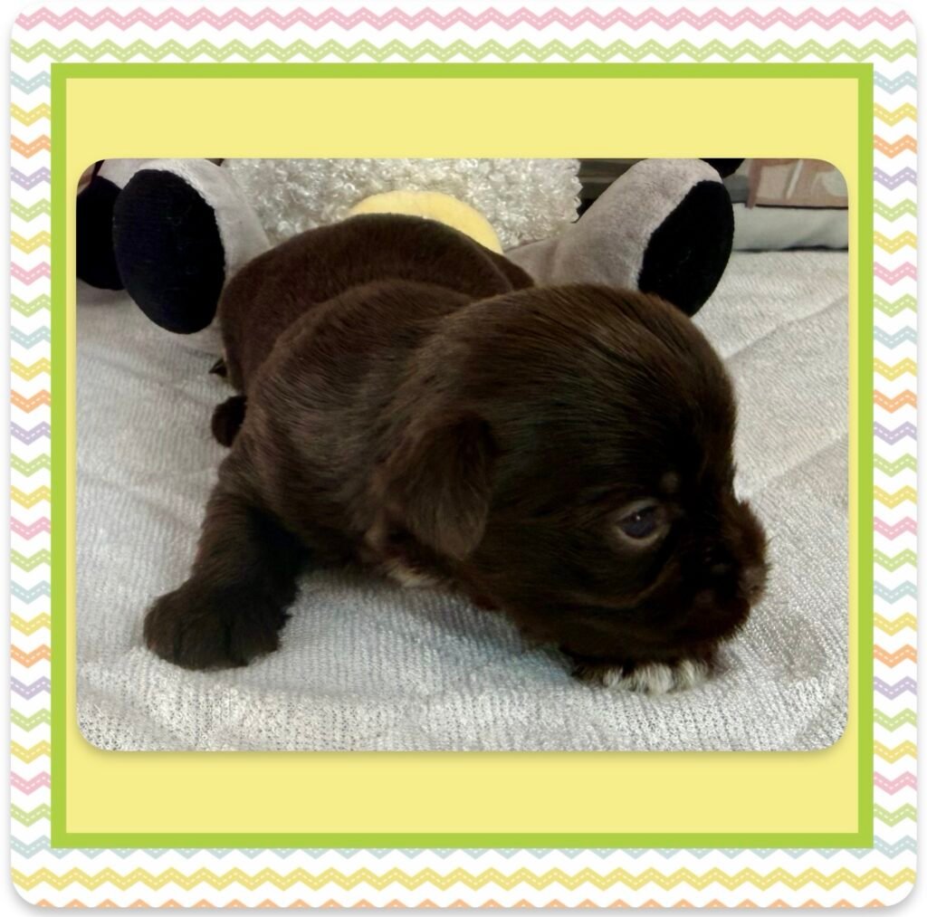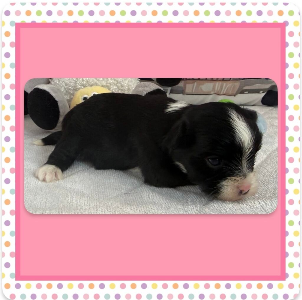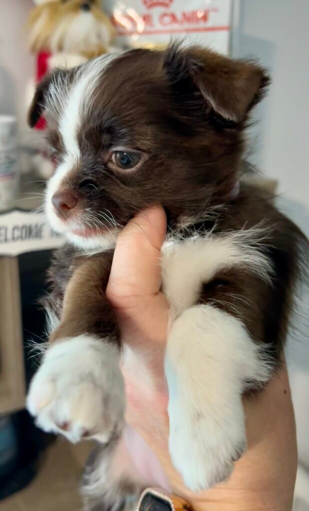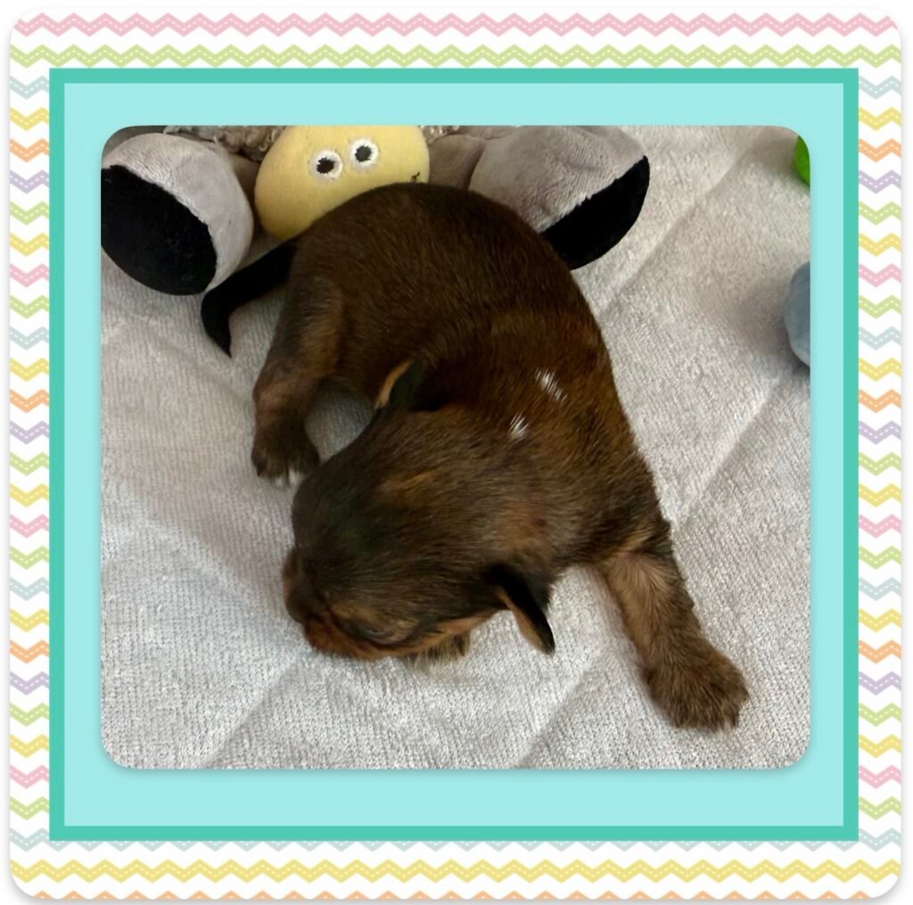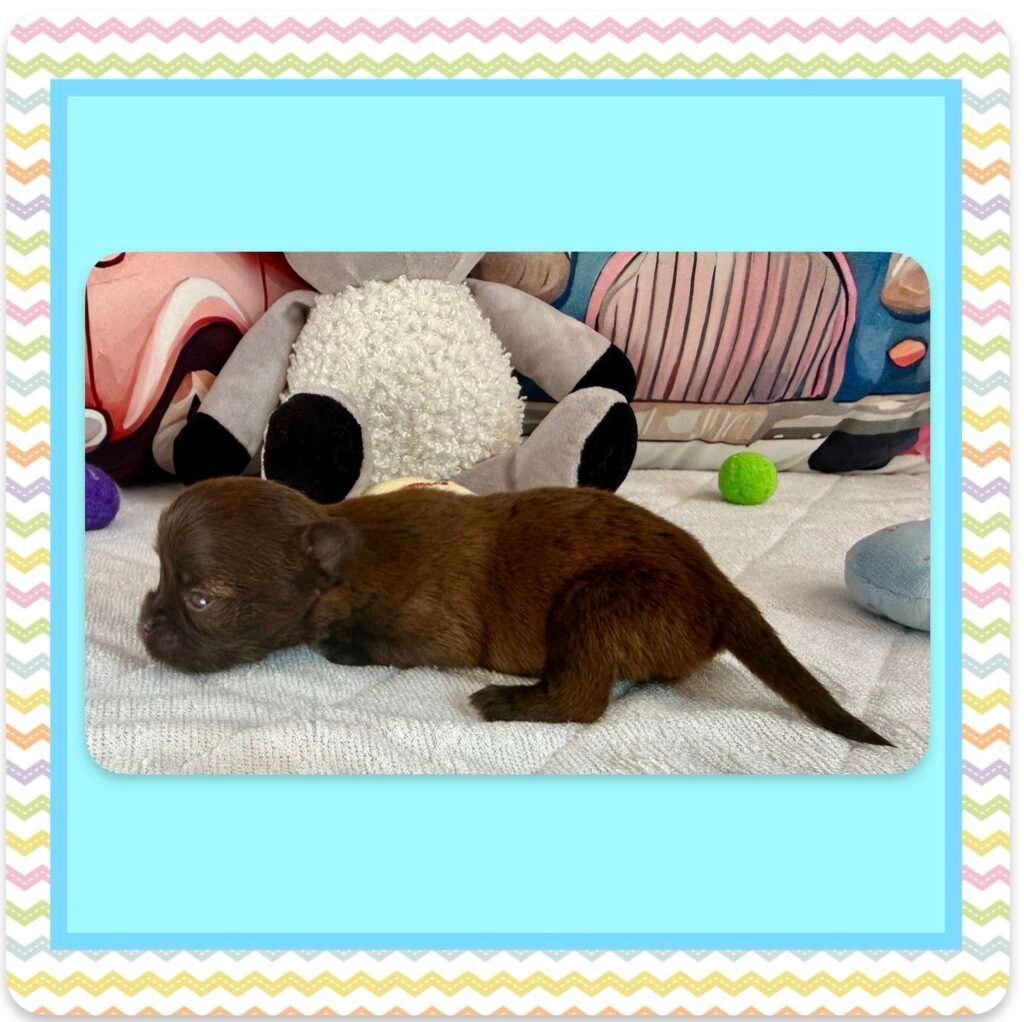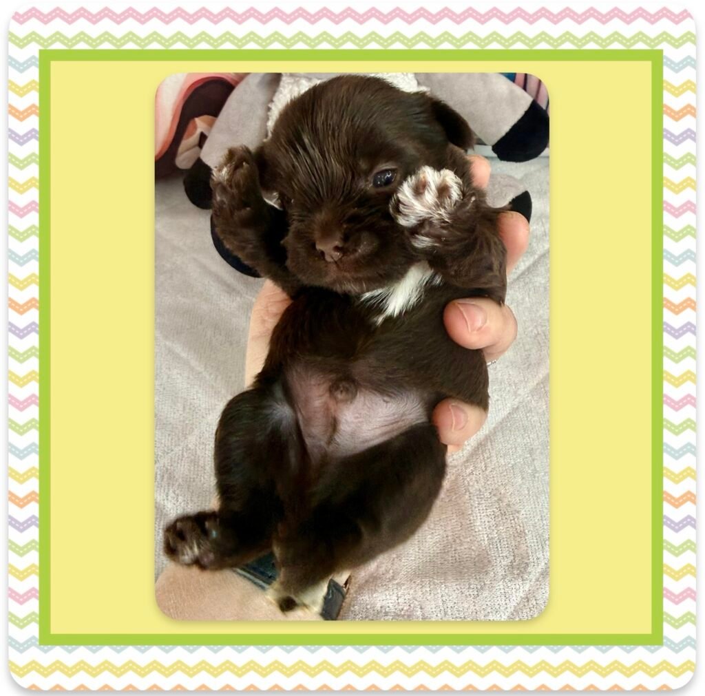 Four beautiful puppies 3 boys, 1 girl, were born to Bri and GusGus. They will have a go home date in March 2026. Colors will develop over the next few days but Xerxes is Sable Parti, Xolo is Chocolate Sable, Xane is Chocolate and Xia is KB Black Parti. .