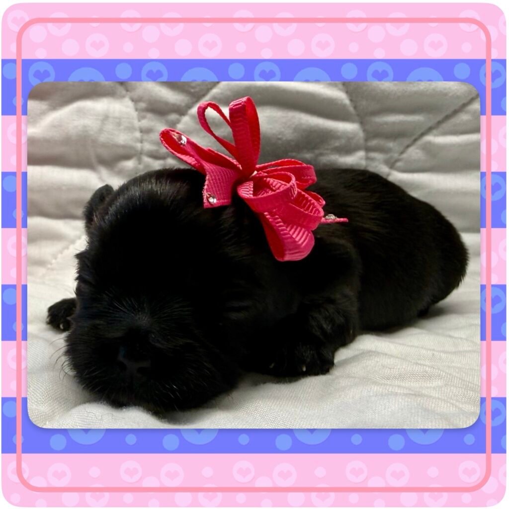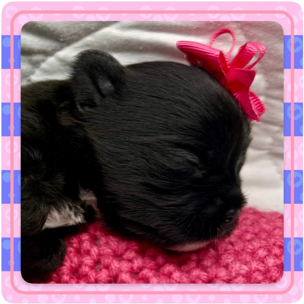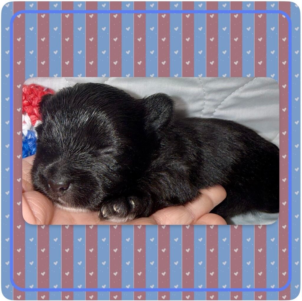 Four beautiful puppies 3 boys, 1 girl, were born to Bri and GusGus. They will have a go home date in March 2026. Colors will develop over the next few days but Xerxes is Sable Parti, Xolo is Chocolate Sable, Xane is Chocolate and Xia is KB Black Parti. .